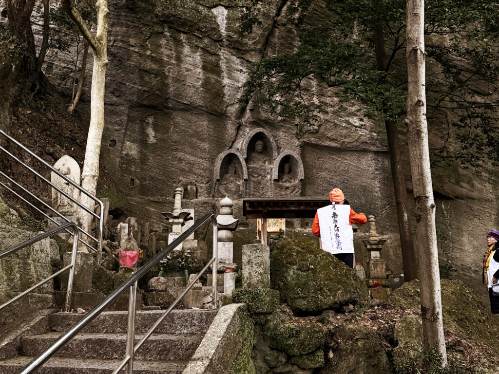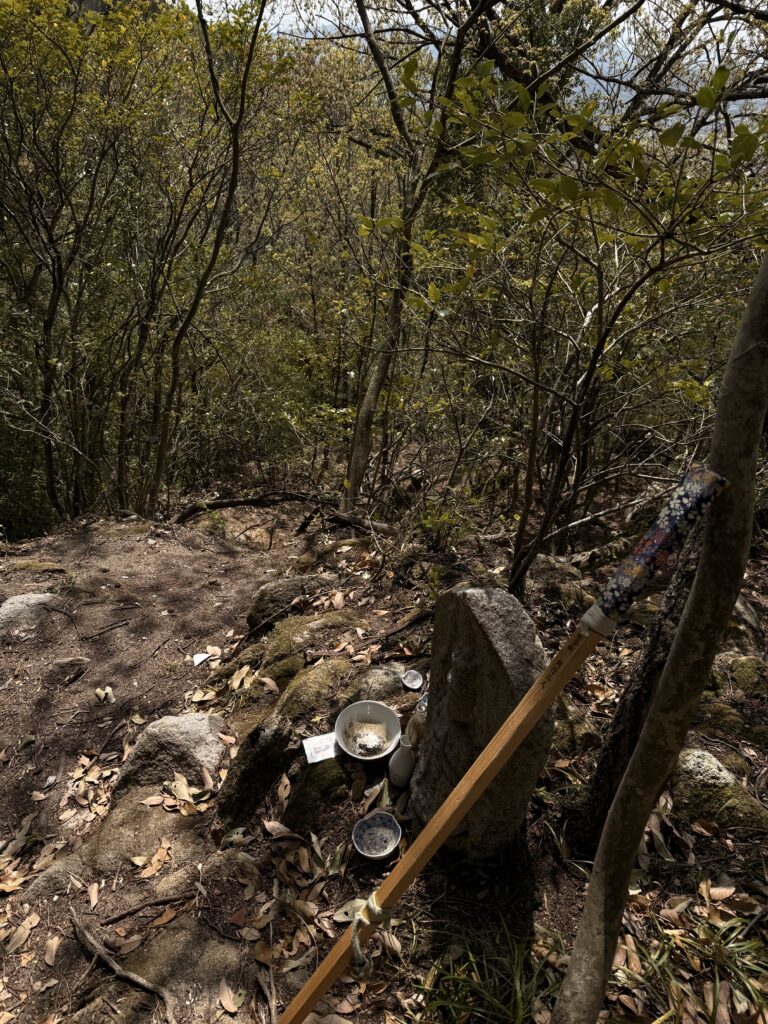 横峰登山 今日は、いよいよ石鎚山塊の中にある横峰寺の登山だ。7時四国屋を出発。7時18分、ファミリーマートでおにぎりとお茶を購入。大頭で右折し、妙之谷川沿いに舗装した道路を行く。同じ道を行く遍路の得野さんと挨拶した。今回の遍路で初めて会った順打ちの歩き遍路の方だ。12月初旬に大阪を立ち、第1番から出発。正月は営業している民宿がなかったので高知のホテルに滞在したとのこと。9時40分、舗装道路終点の休憩所に着いた。ここからは山道だ。得野さんが先に発ち続いて私も。鬱蒼とした森の道だ。ひとりで歩いていると、この世を歩いているのか冥土を漂っているのか、どちらだろうかと思うような霊気を感じる。登り道はきついけれどすっきりして清々しい。11時半、道の脇に遍路墓を見る。12時14分、60番横峰寺に到着。宿からここまで、16,327歩、13km。