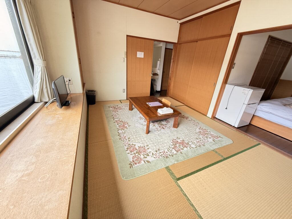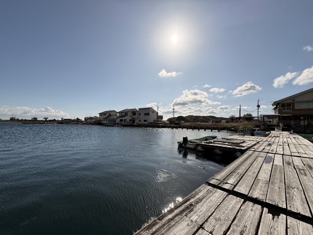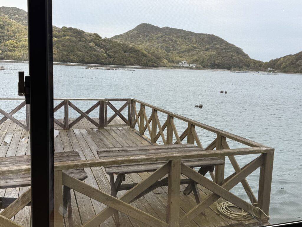 ゲストハウス・アミーマンボス 宿は引田の街の北西約1kmにある。案内された部屋に入って驚いた。六~八畳ほどの畳の客室で大窓が安戸池に向いていて景観が素晴らしい。窓の外に水上デッキがある。客室の隣がベッド付き寝室(写真下)。広い浴室、トイレも付いている。