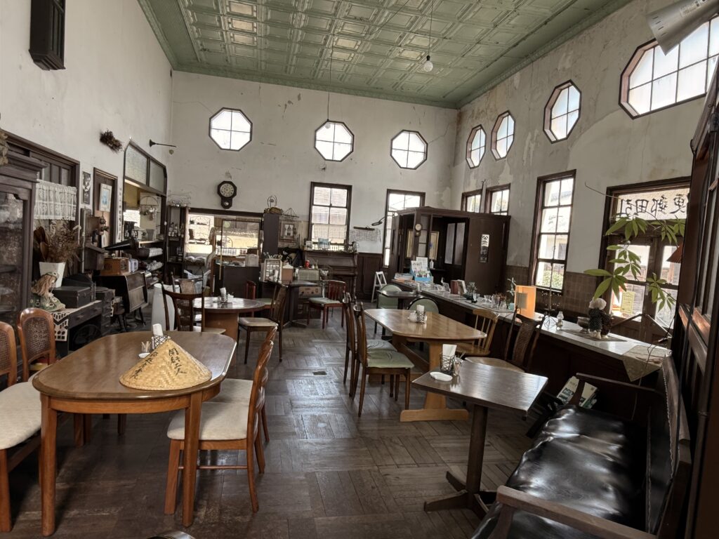 引田の街まで歩いて20分ほど。カフェ・ヌーベルポストは元引田郵便局。昭和7年から53年まで郵便局として使われていた。天井が高く、窓や窓ガラスに風情がある。流れているバイオリン曲の音色が素晴らしい。聞くと、カセットラジオの演奏だ。建物の骨組みが木筋であるから響きが柔らかいのだという。