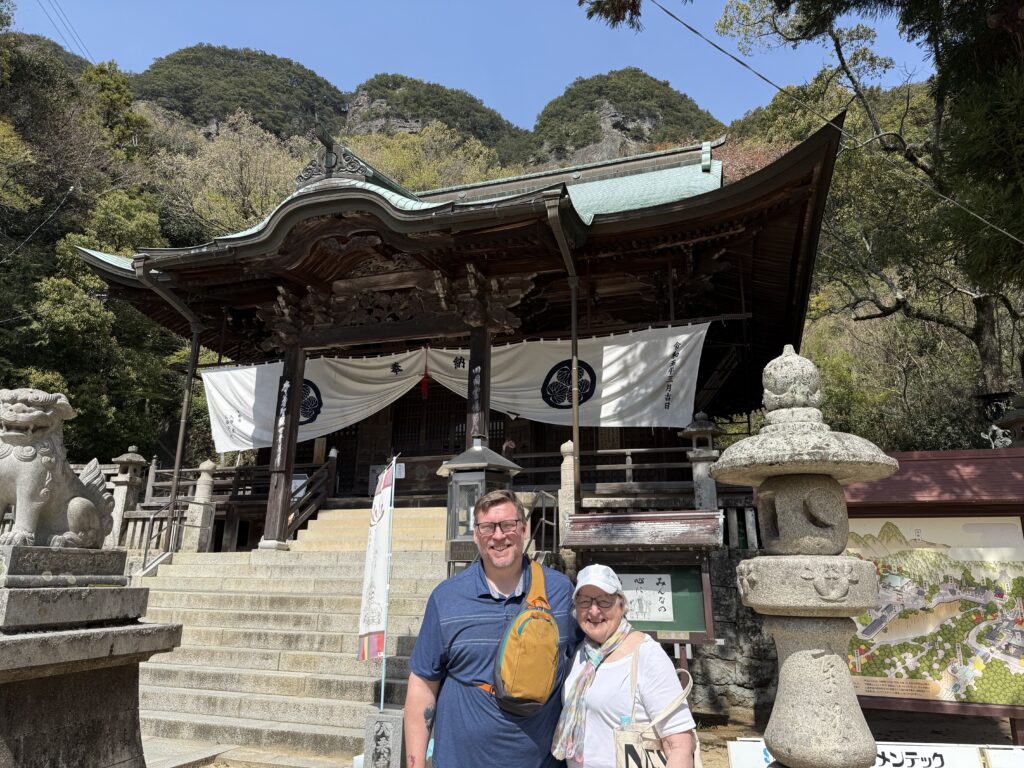 88番大窪寺 結願の寺、大窪寺に参拝。8時に納経を済ませた。境内で会った森山さんに記念の写真を撮っていただいた。やはり、一仕事を終えてほっとしたような気持ちだ。